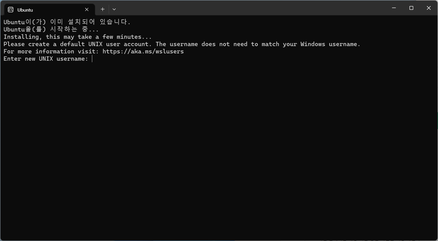그리고 안내에 따라서 Ubuntu(우분투)를 사용하기 위한